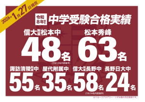 南松本校からも合格者多数! 信大附属中・秀峰中・諏訪清陵中など…